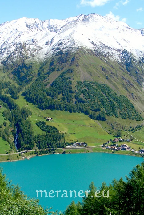 Vom Parkplatz am Stausee von Vernagt (1.710 m) gehen wir über den Staudamm und wandern jenseits, der Markierung 13 folgend, durch steilen Wald und über Almwiesen hinauf zur uralten Grubalm. Leicht ansteigend führt der Weg (Nr. 13) weiter über Almwiesen zur Berglam (2.214 m, bis Ende Oktober bewirtschaftet; ab Parkplatz ca. 2 ½ Stunden). Nun folgen wir dem etwas steilen Almweg Nr. 13 und dem Hinweis „Gerstgras“ bergab, bis kurz oberhalb der Höfegruppe Gerstgras der Weg Nr. 13 A nach rechts abzweigt, auf dem wir noch einmal kurz etwas ansteigen und dann am südlichen Seeufer talauswärts wandern bis zum Staudamm und zum Parkplatz (ab Berglalm ca. 2 Stunden).