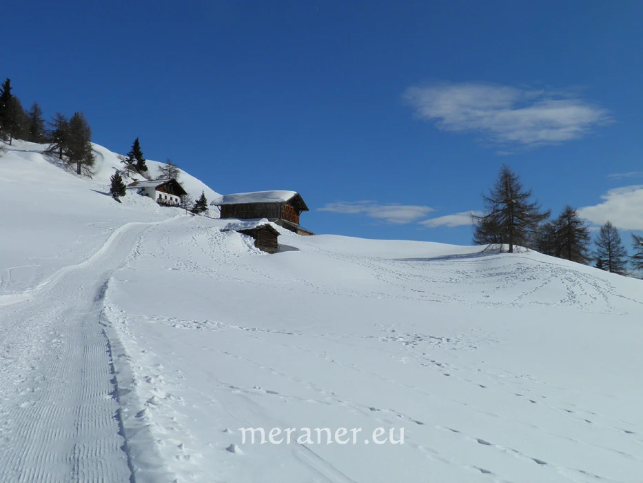 Rückweg: wie Hinweg (ca. 1 ½ Stunden; bei Abfahrt mit der Rodel entsprechend weniger). In weniger schneereichen Wintern ist ab der „Morx Puite“ der Abstieg über den „Stuller Waldweg“ möglich.
