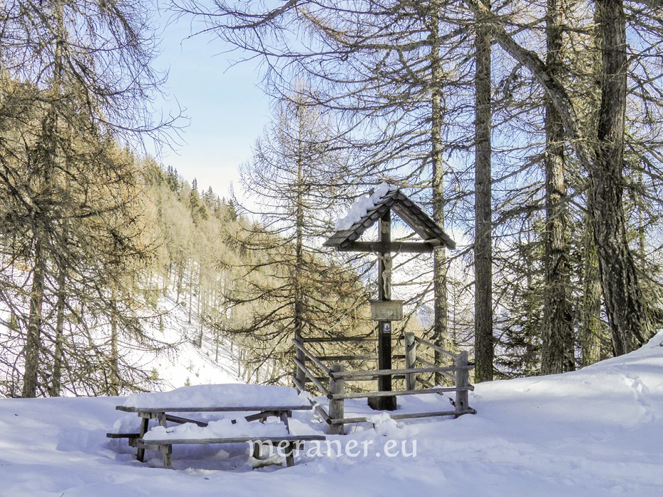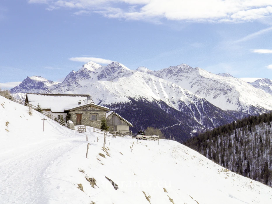 Besonderheiten: Im Wildgehege kann man mit etwas Glück Wild beobachten. Der Weg durch den Wald und der Aufenthalt auf der Alm bieten viel Ruhe, weil nur Wanderer und Skitourengeher anzutreffen sind; der laute Skibetrieb fehlt. Auf halbem Weg gibt der Wald kurz den Blick auf den Ortler frei. Oberhalb der Waldgrenze reicht die Sicht dann weit hinunter in den Vinschgau und auf die gegenüberliegenden prächtigen Bergmassive der Ortlergruppe. Auf der Alm wird man mit allerlei Spezialitäten verwöhnt. Sie ist seit einigen Jahren auch im Winter – in der Weihnachtszeit täglich und danach an den Wochenenden – geöffnet.
